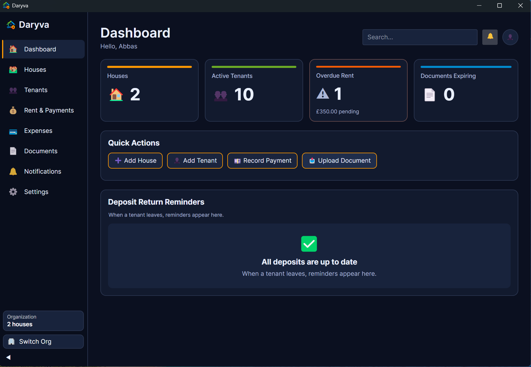 Rent, expenses, documents, and reminders — all in one dashboard.